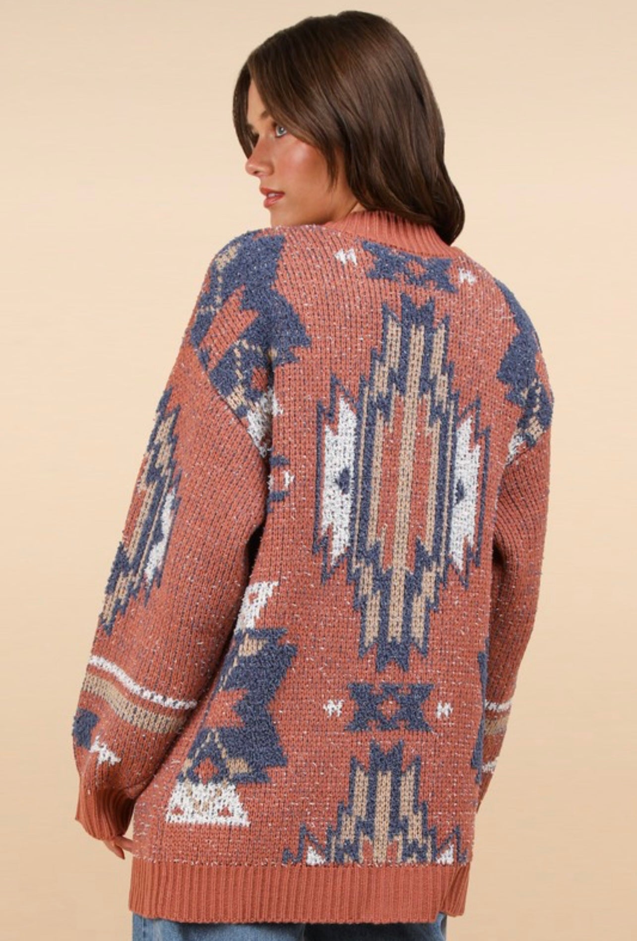 This cardigan is a go-to for adding warmth, personality, and a touch of Southwestern charm to any outfit.