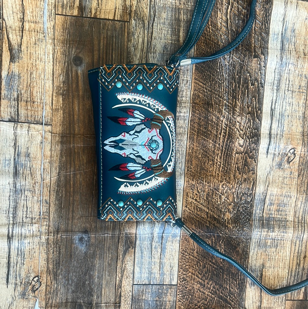 This crossover wallet with an Aztec head skull design is the perfect blend of edgy style and functionality. Compact yet spacious, it offers plenty of room for all your essentials, making it ideal for daily use or on-the-go convenience. Despite its small size, this wallet is cleverly designed to hold your phone, debit cards, cash, and more, with organized compartments that maximize its capacity.
