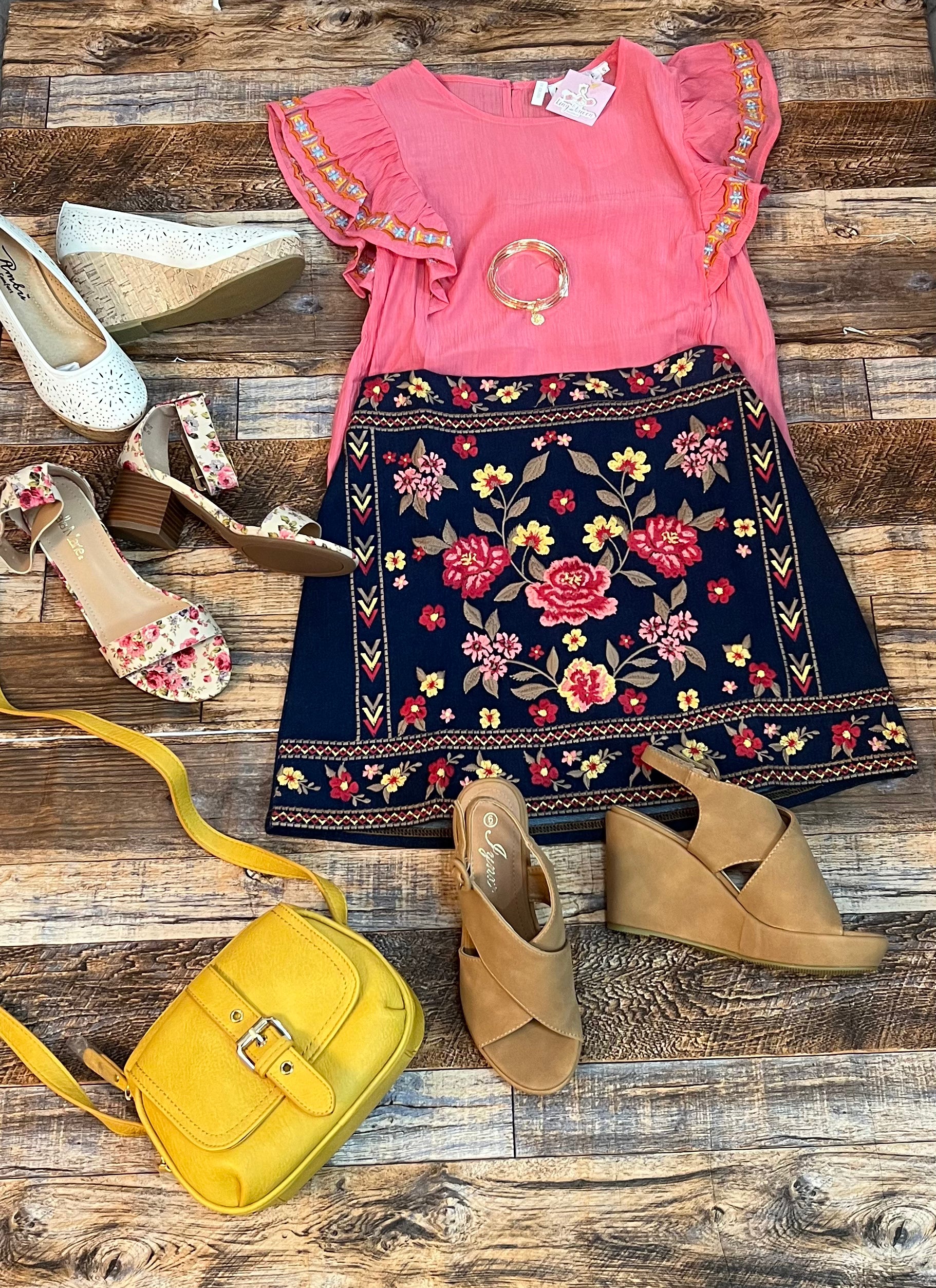 Embroidered A line skirt A line silhouette with floral embroidery is so prefect with woven tops non sheer
