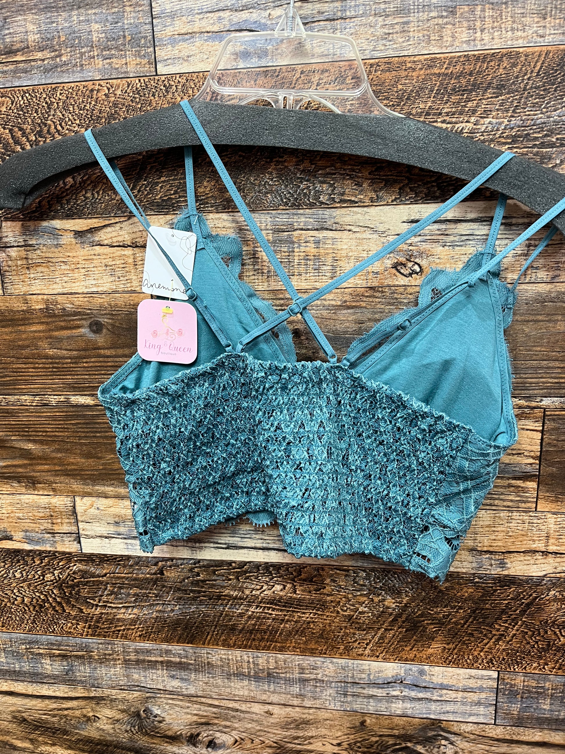 Lace cami bralette Turquoise adjustable straps cross cross in the back