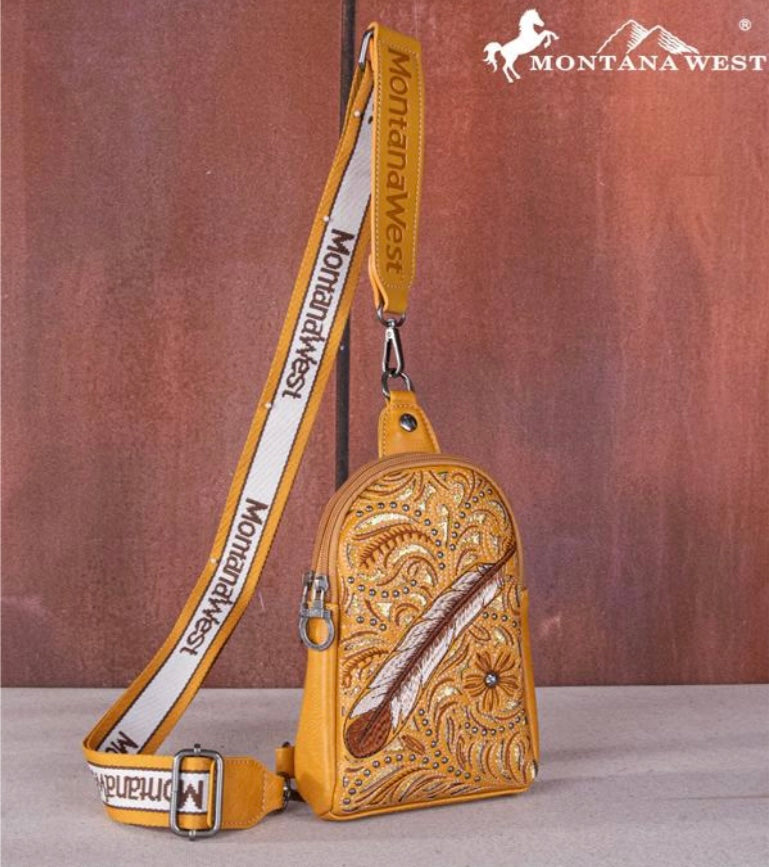 Montana West Feather Embroidered Floral Sling Bag – Western Elegance in a Compact Design