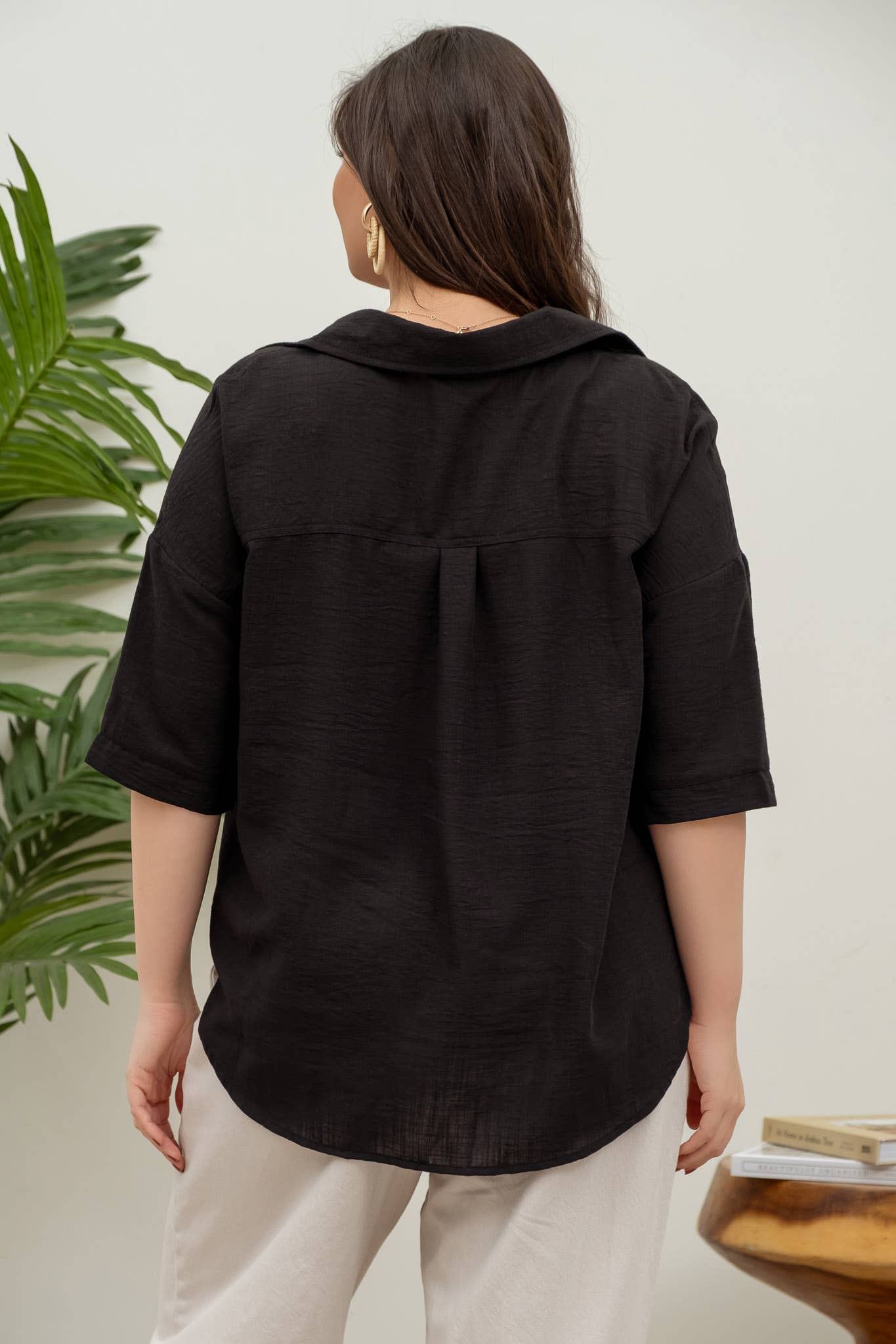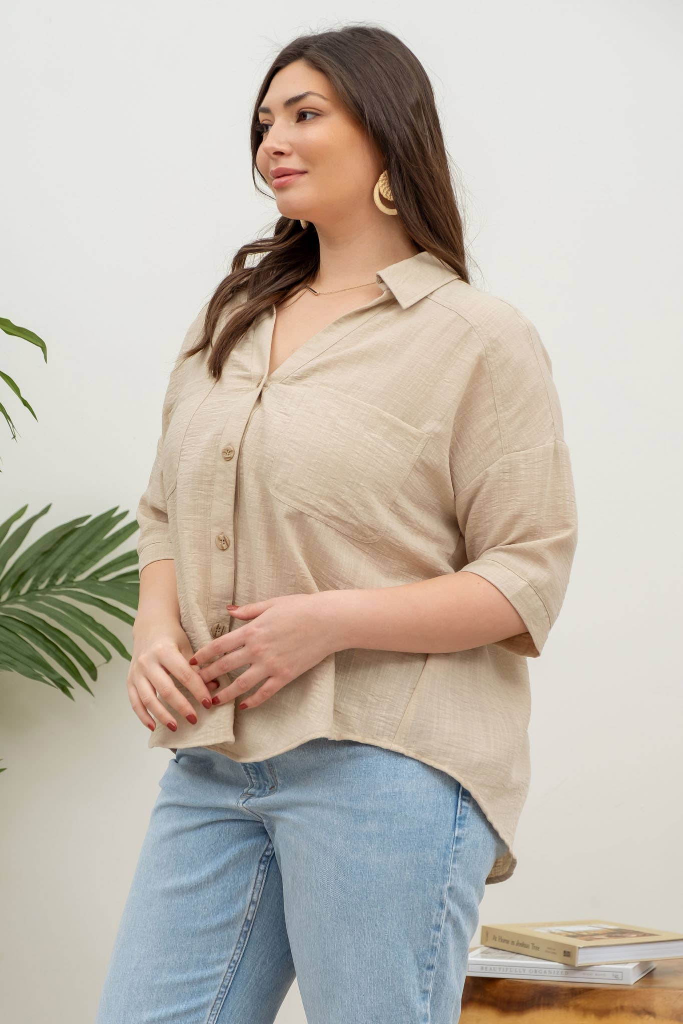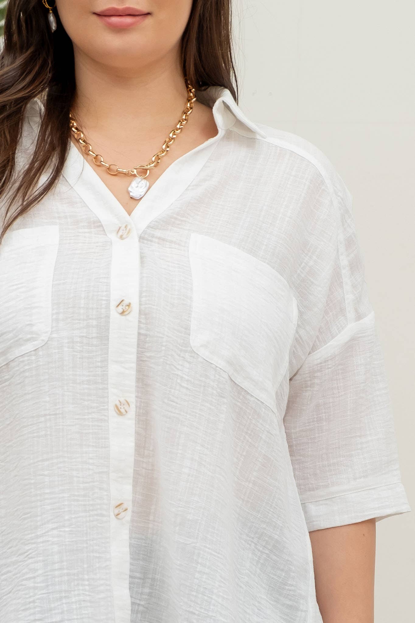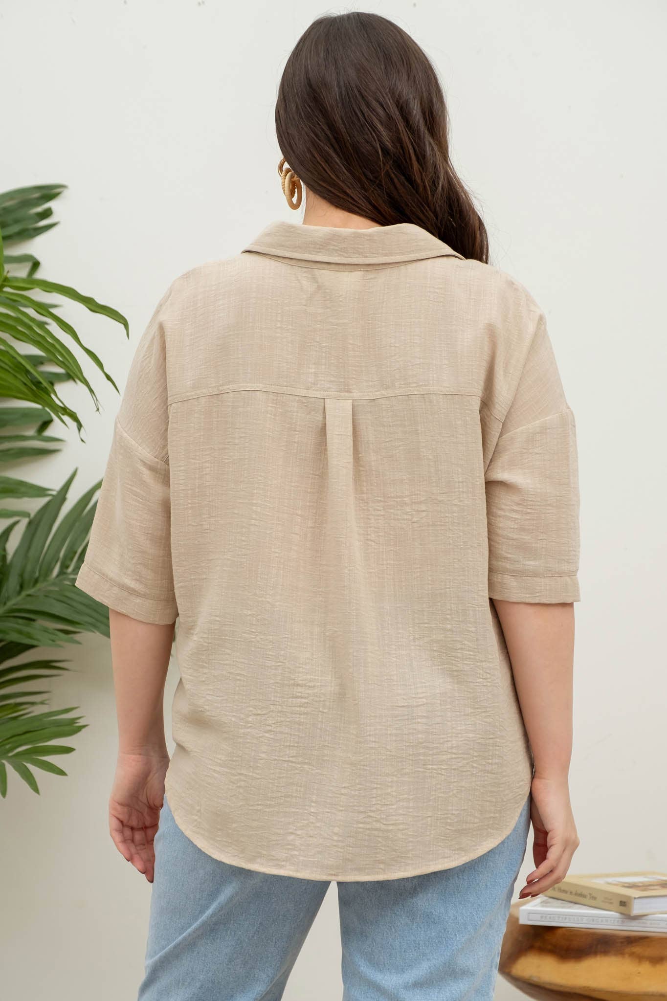 3 1X, 2 2X, 1 3X - COLLARED - SHORT FROP SLEEVE - BACK YOKE DETAIL - BUTTON FRONT - PICKETS - LIGHT WEIGHT - SHEER - SOLID - WOVEN TOP - 100%POLYESTER