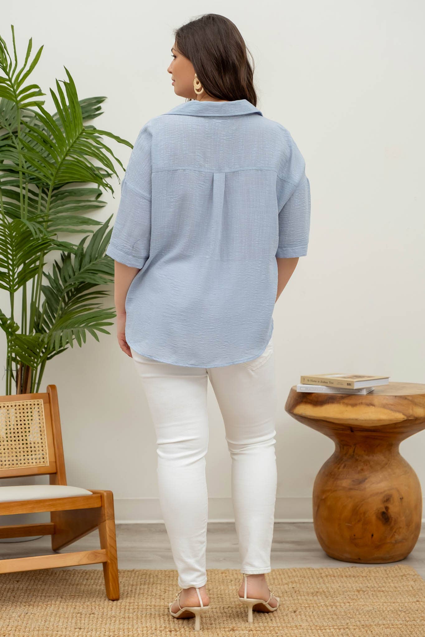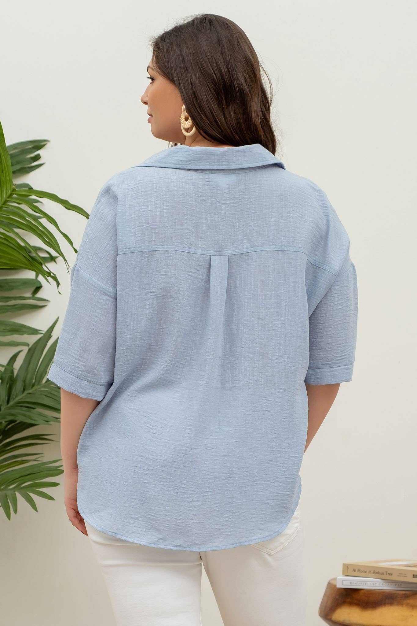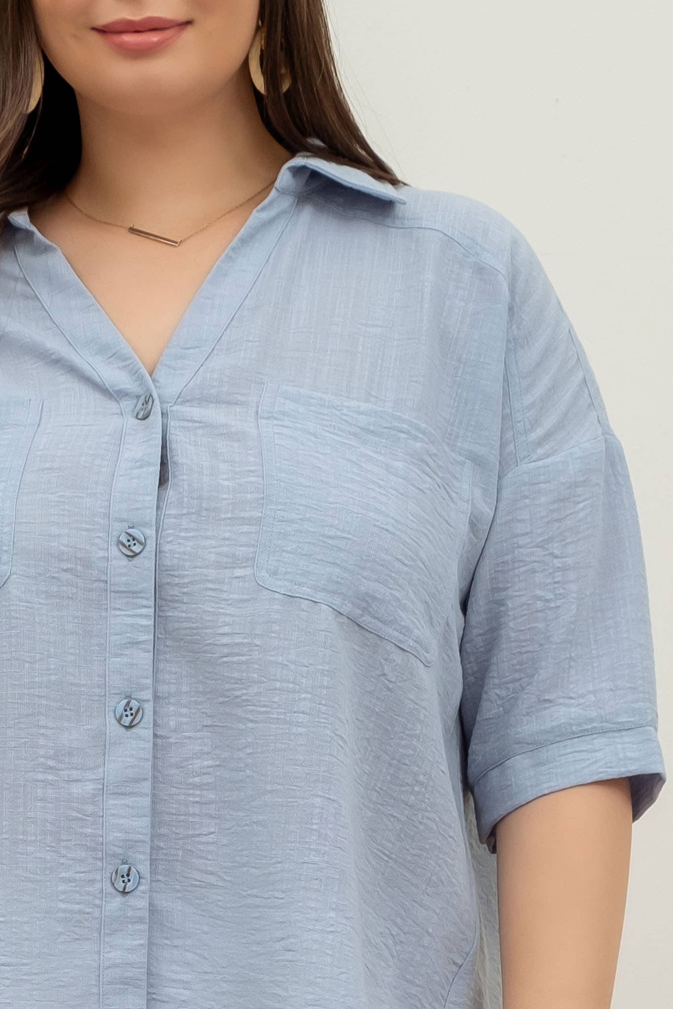 PLUS GAUZE SHORT SLEEVE BUTTON DOWN SHIRT: BLUE