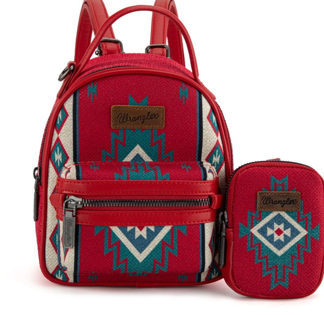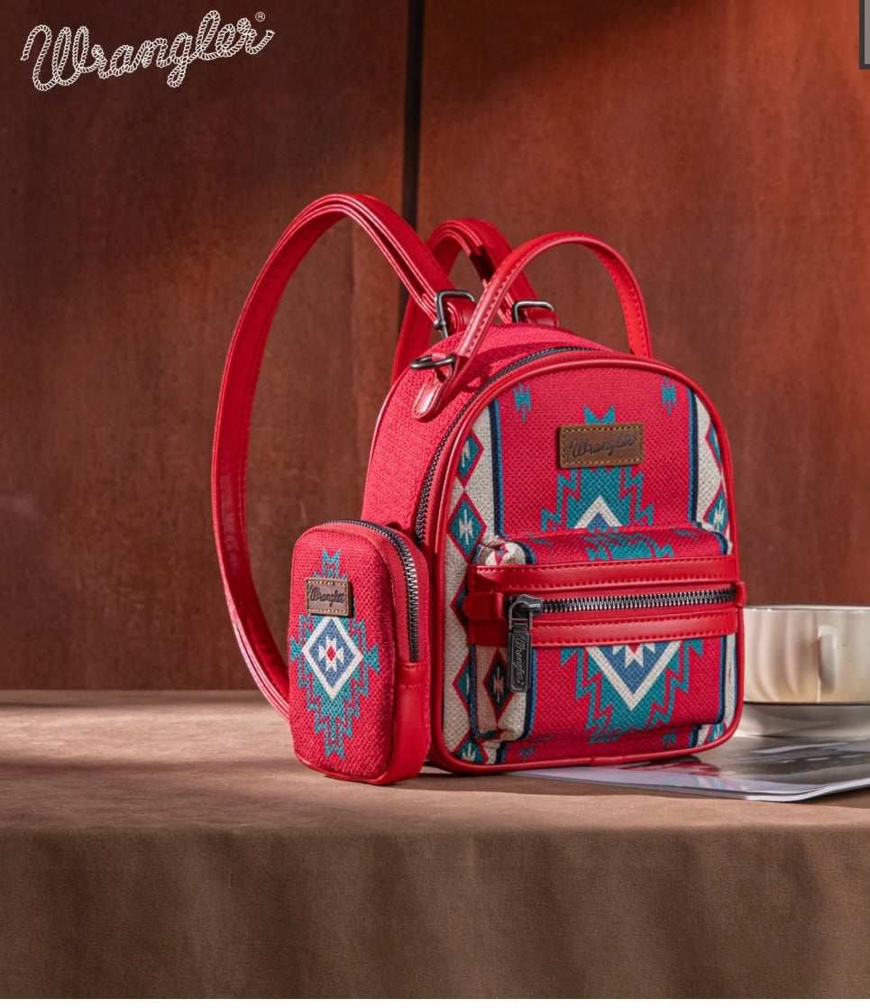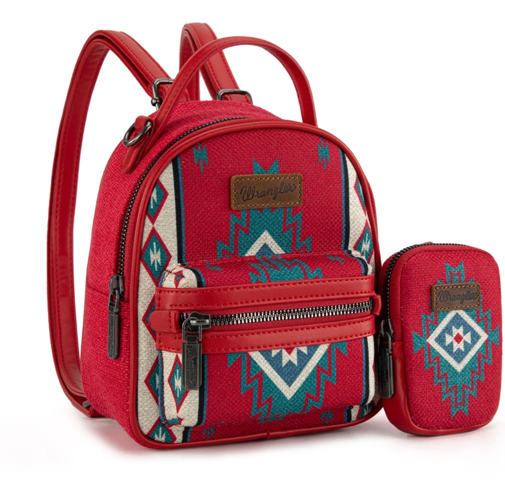 This Wrangler mini backpack combines cozy texture with bold Western flair. Crafted from tapestry knitted fabric and finished with a striking Aztec pattern, it’s the perfect mix of rustic charm and everyday practicality.