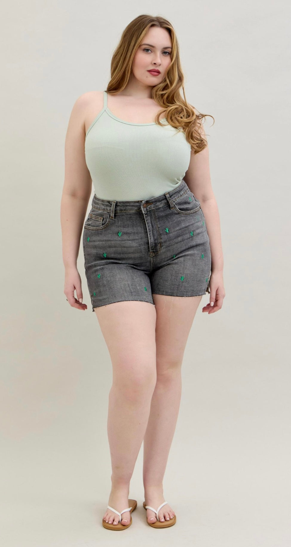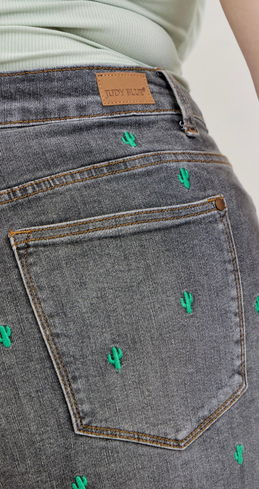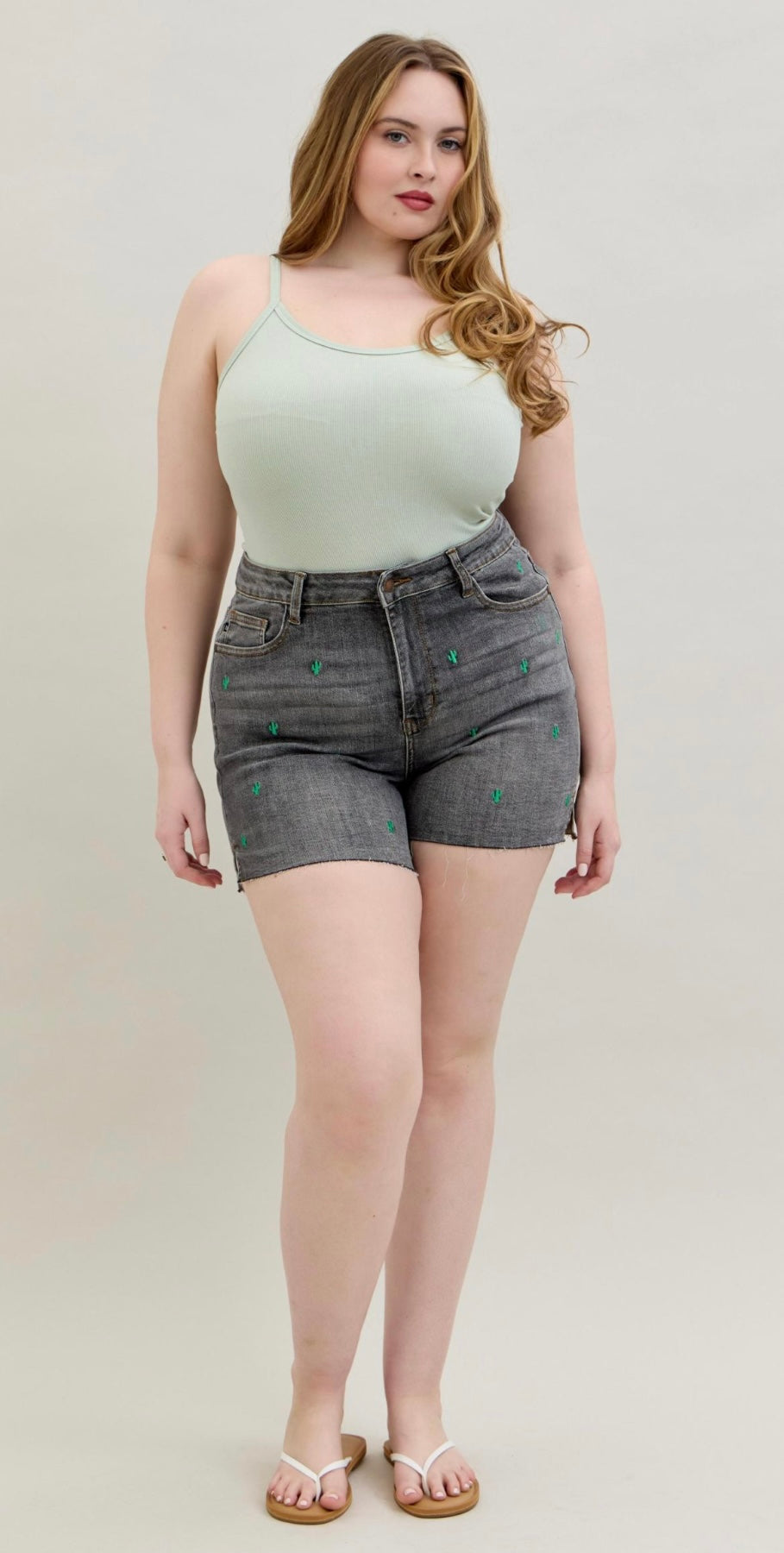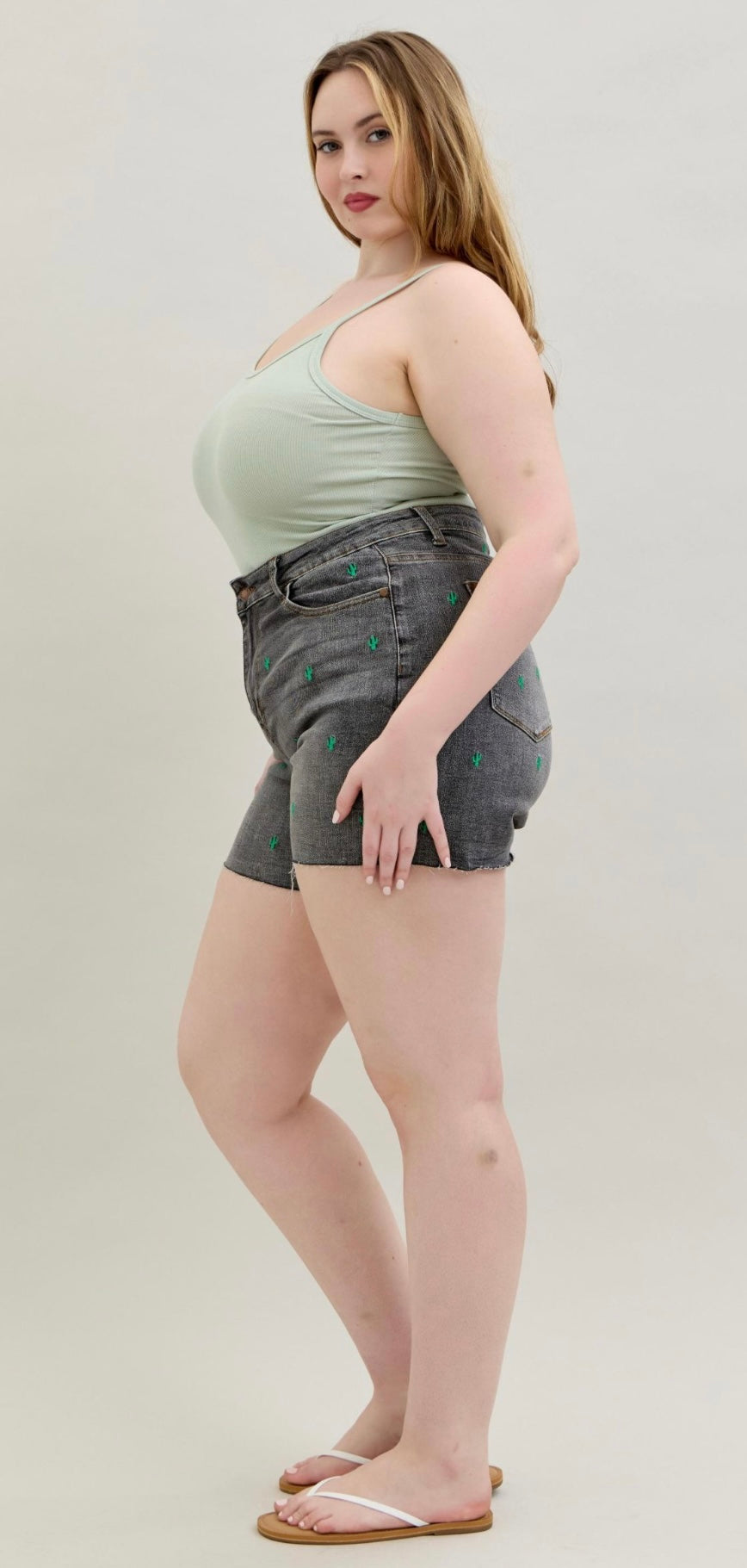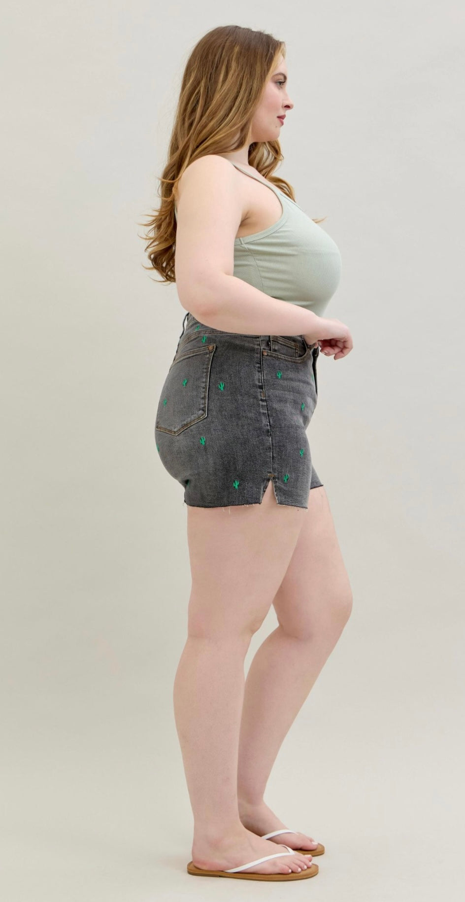 Product Title: Judy Blue Cactus Embroidered Denim Shorts