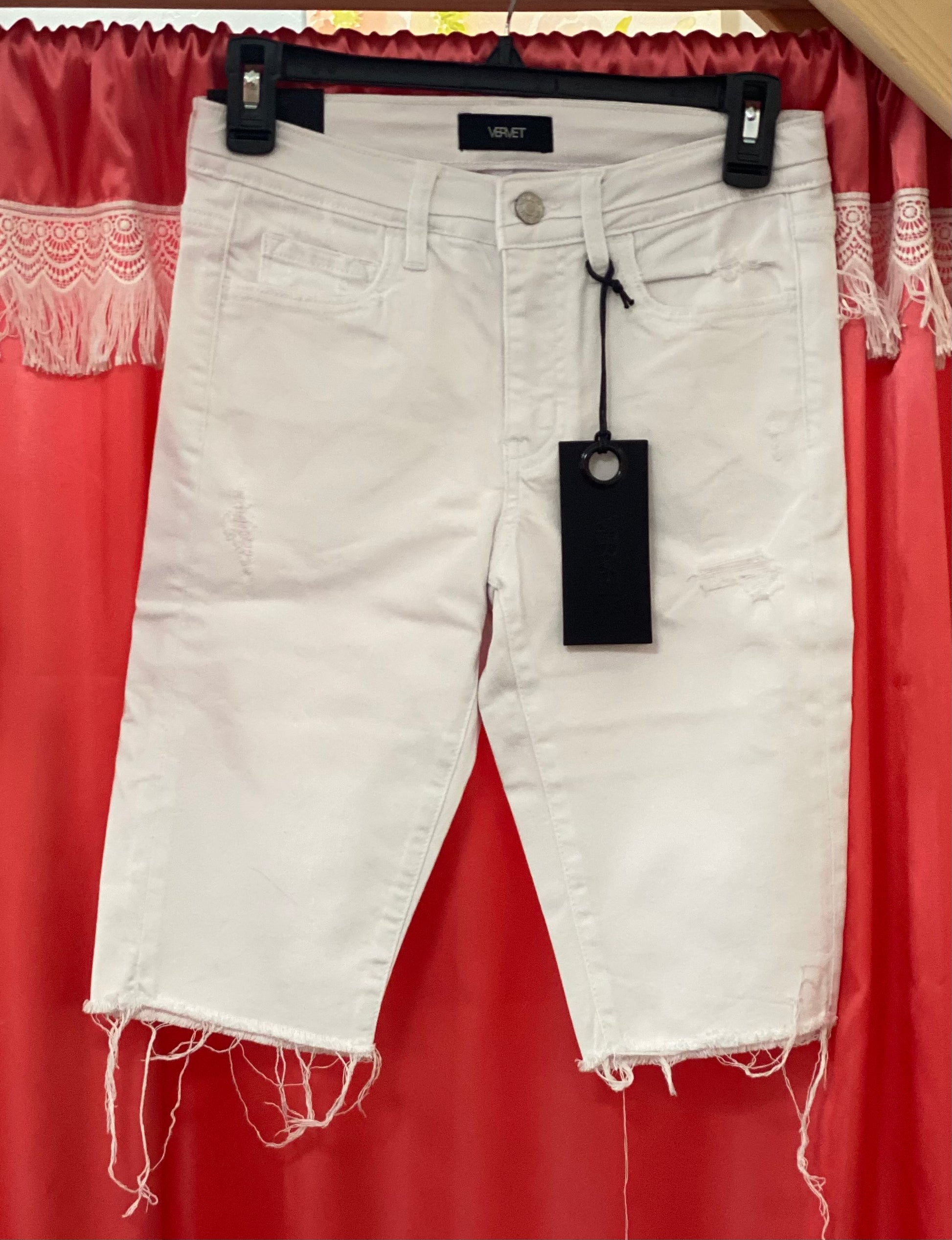Get summer-ready with these crisp white Bermuda shorts from Vervet! Perfectly stretchy, mid-length, and flattering on every curve.