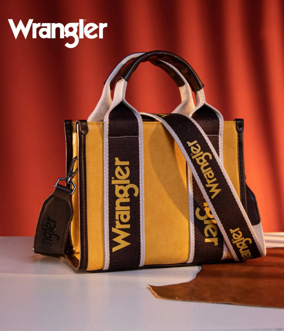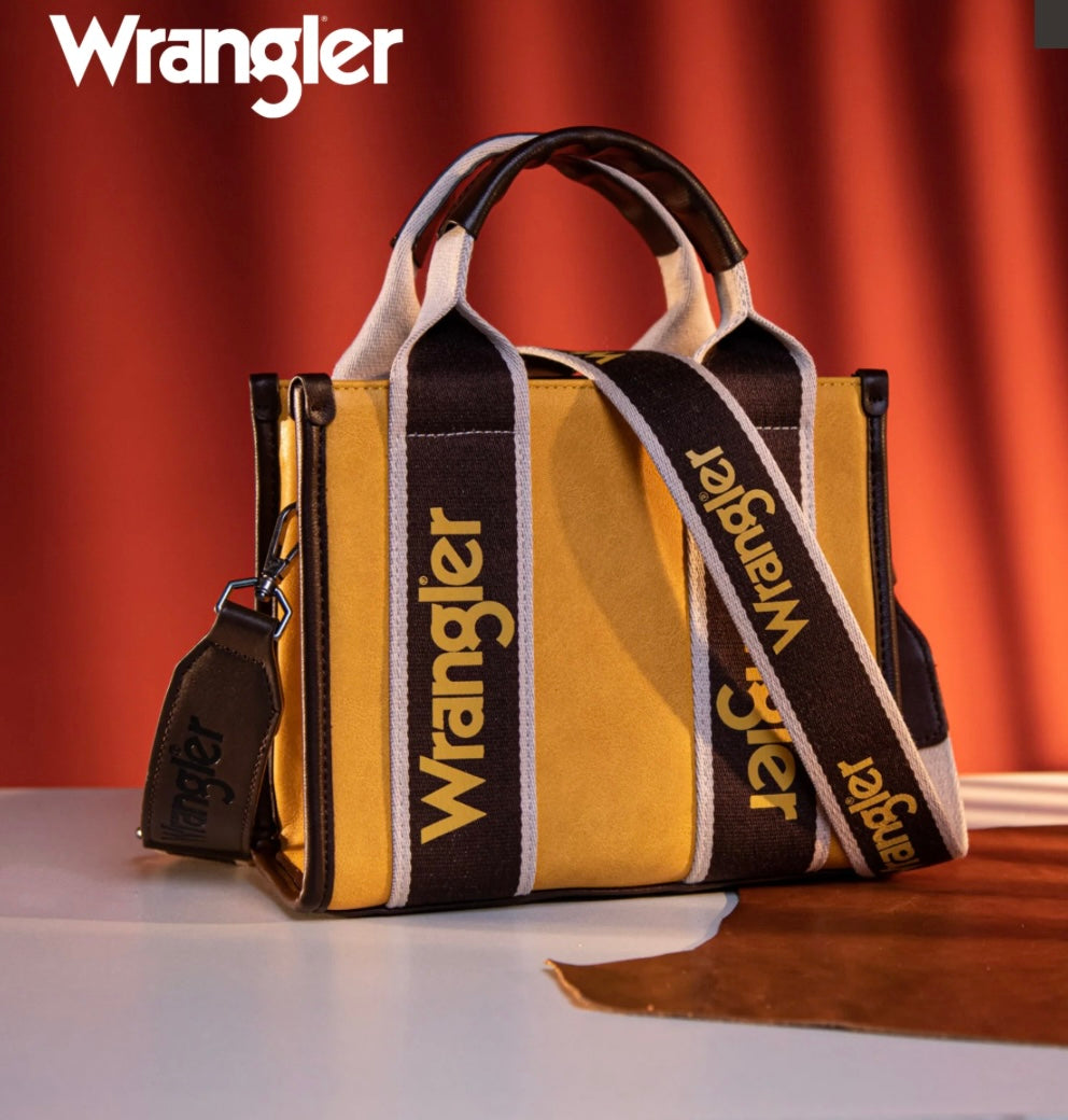 This compact Wrangler tote/crossbody is where classic Western charm meets everyday function. Made from durable PU leather with a bold canvas Wrangler logo, it’s the perfect size for your essentials — whether you’re headed to the market, a vendor event, or just running around town.